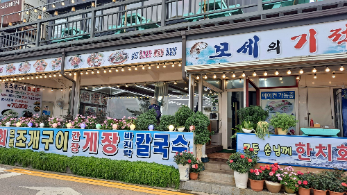 점심은 '모세의 기적'에서 바지락 칼국수를 먹었습니다.