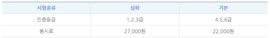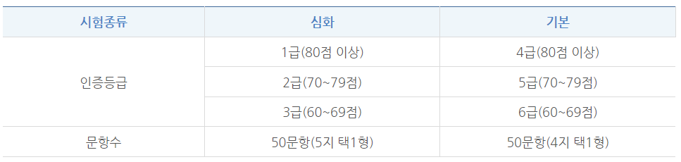 시험종류 및 인증등급