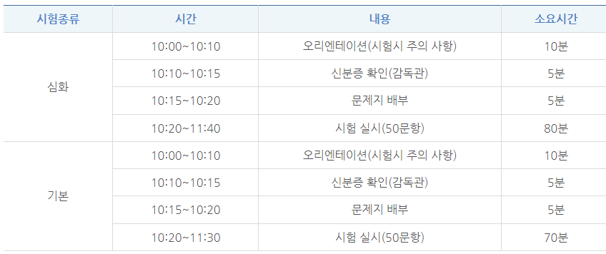 시험시간표